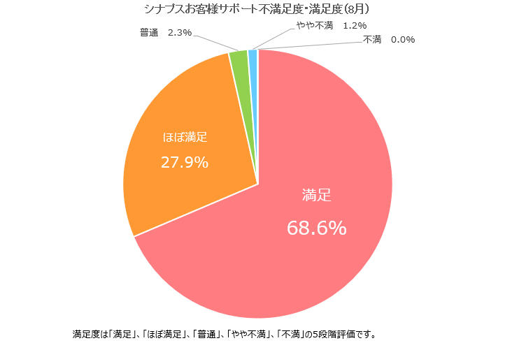 シナプスでは、お客様へのサポート品質の向上を目的として、サポートをご利用いただいたお客様に対し、ご満足度アンケートをお願いしています。ご多忙の中、アンケートにご協力いただいたお客様には、心より御礼申し上げます。