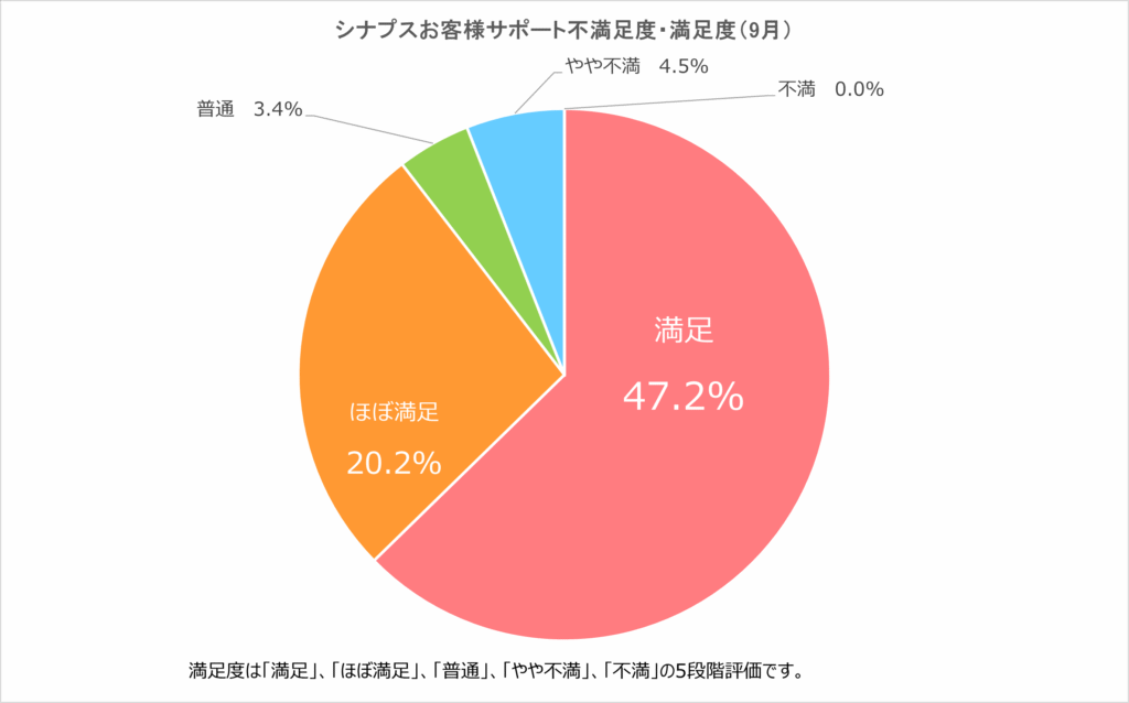 シナプスでは、お客様へのサポート品質の向上を目的として、サポートをご利用いただいたお客様に対し、ご満足度アンケートをお願いしています。ご多忙の中、アンケートにご協力いただいたお客様には、心より御礼申し上げます。