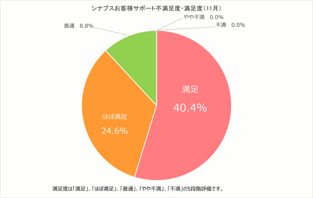 シナプスでは、お客様へのサポート品質の向上を目的として、サポートをご利用いただいたお客様に対し、ご満足度アンケートをお願いしています。ご多忙の中、アンケートにご協力いただいたお客様には、心より御礼申し上げます。
